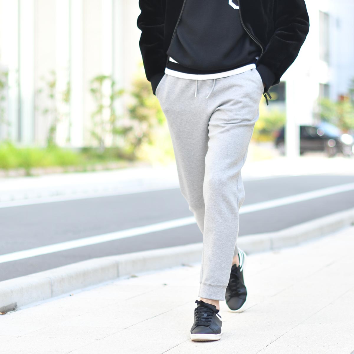 ボトムスにもジョガーパンツとスニーカーをコーディネートして、