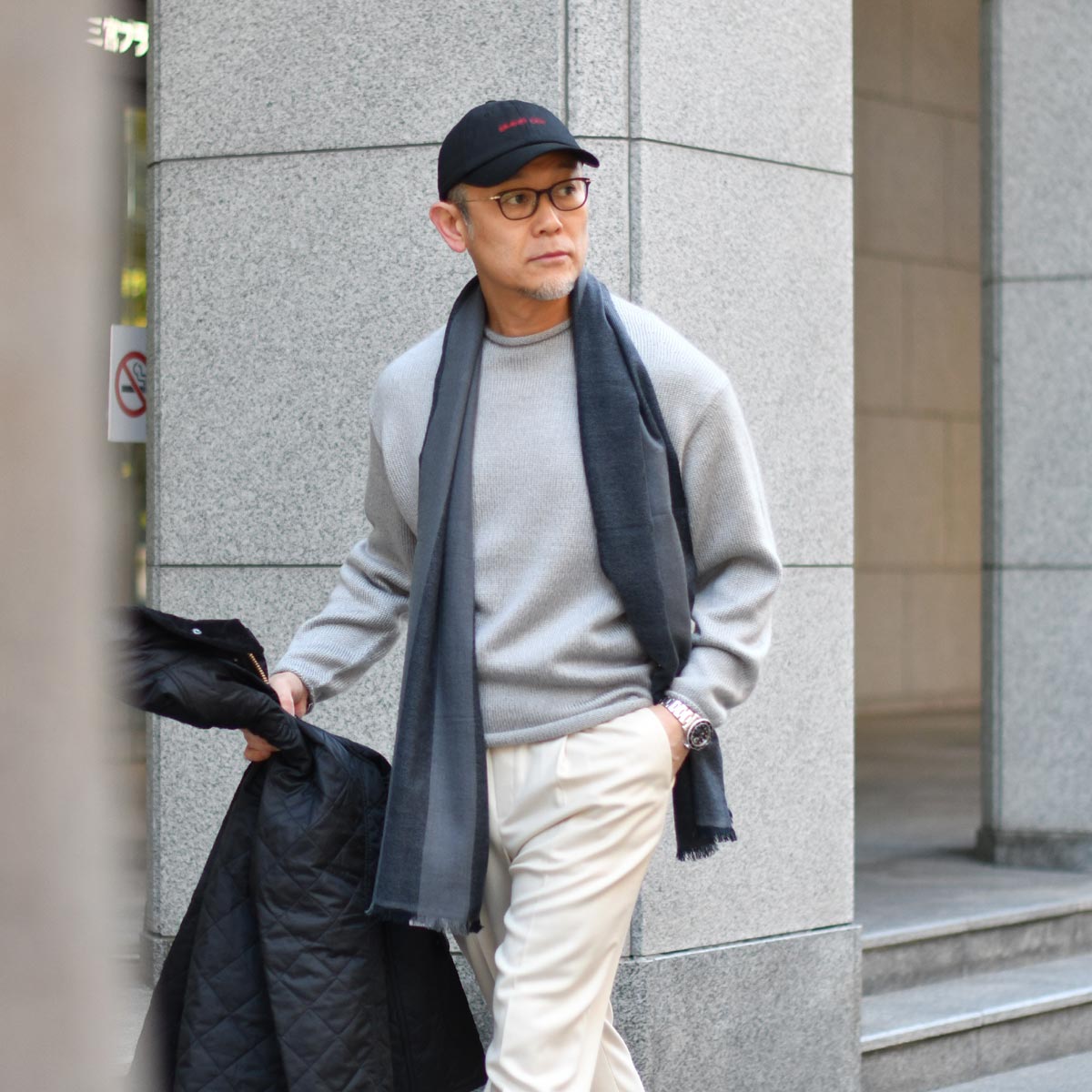 敢えてスポーティーな着こなしを演出すれば、