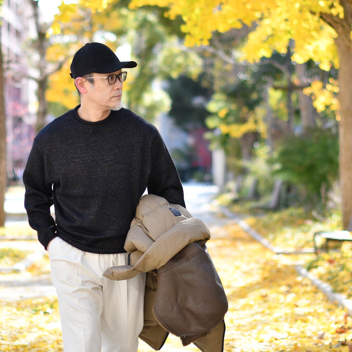 インナーには、SCAGLIONEのアルパカニットを合わせました。