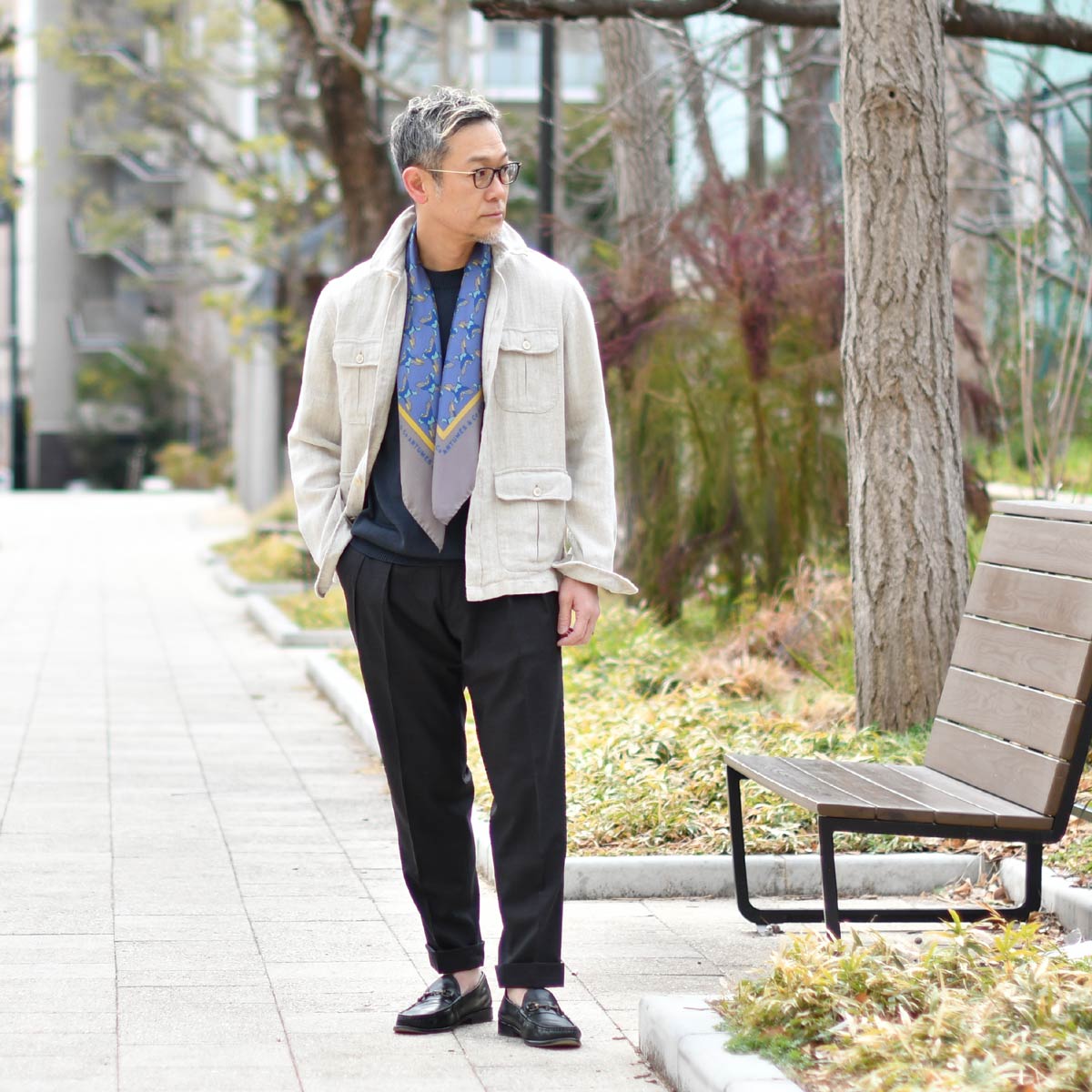 一見、サファリジャケットの様に見える構築的な佇まいではありますが、
