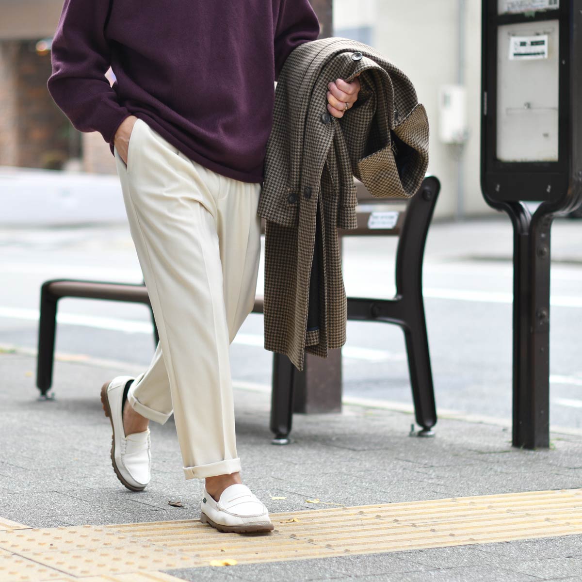 ホワイトのボトムスでクリーンに決めたスタイルを是非。