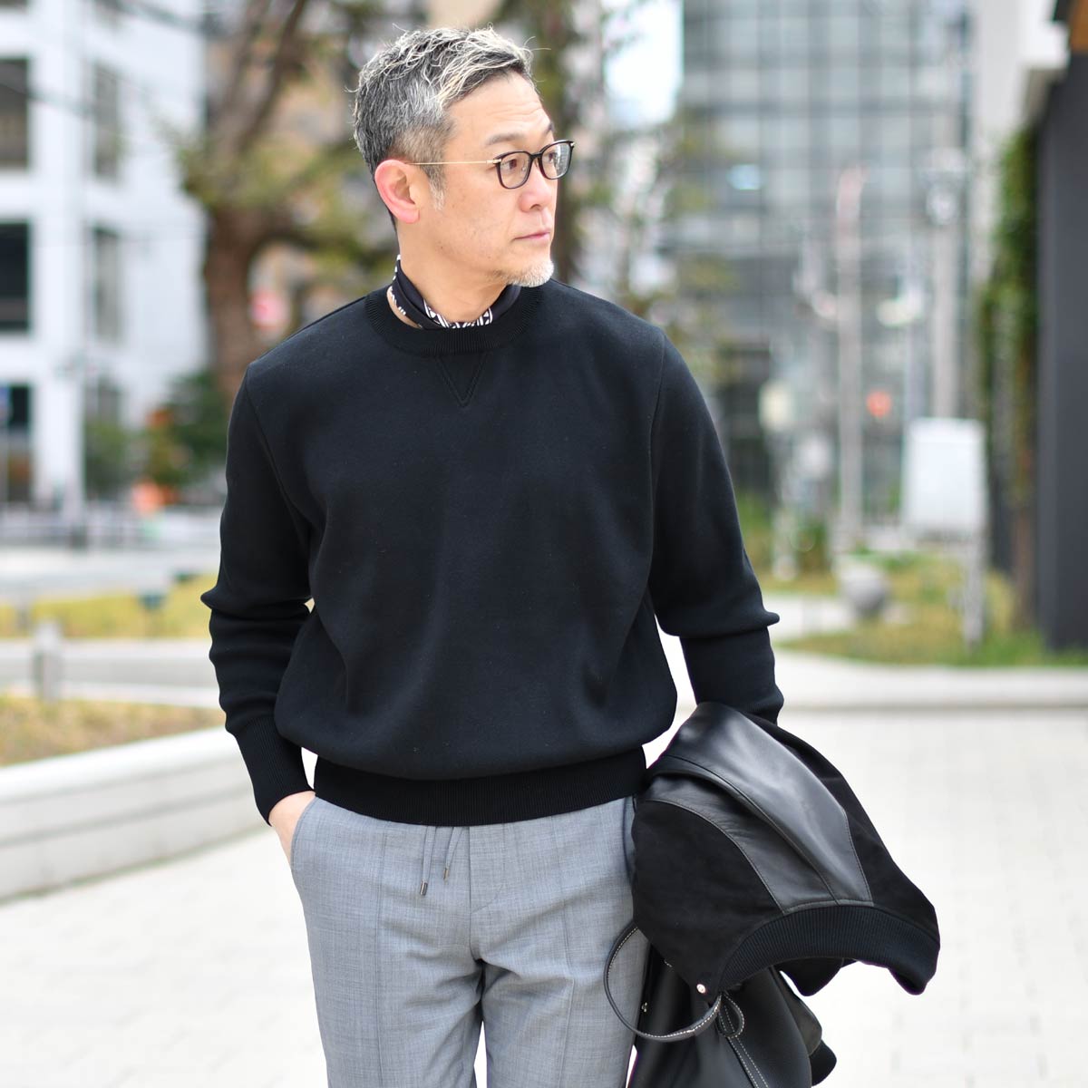 コットンにシルクをブレンドしたクリーンな表情は正に大人スウェットですね♪