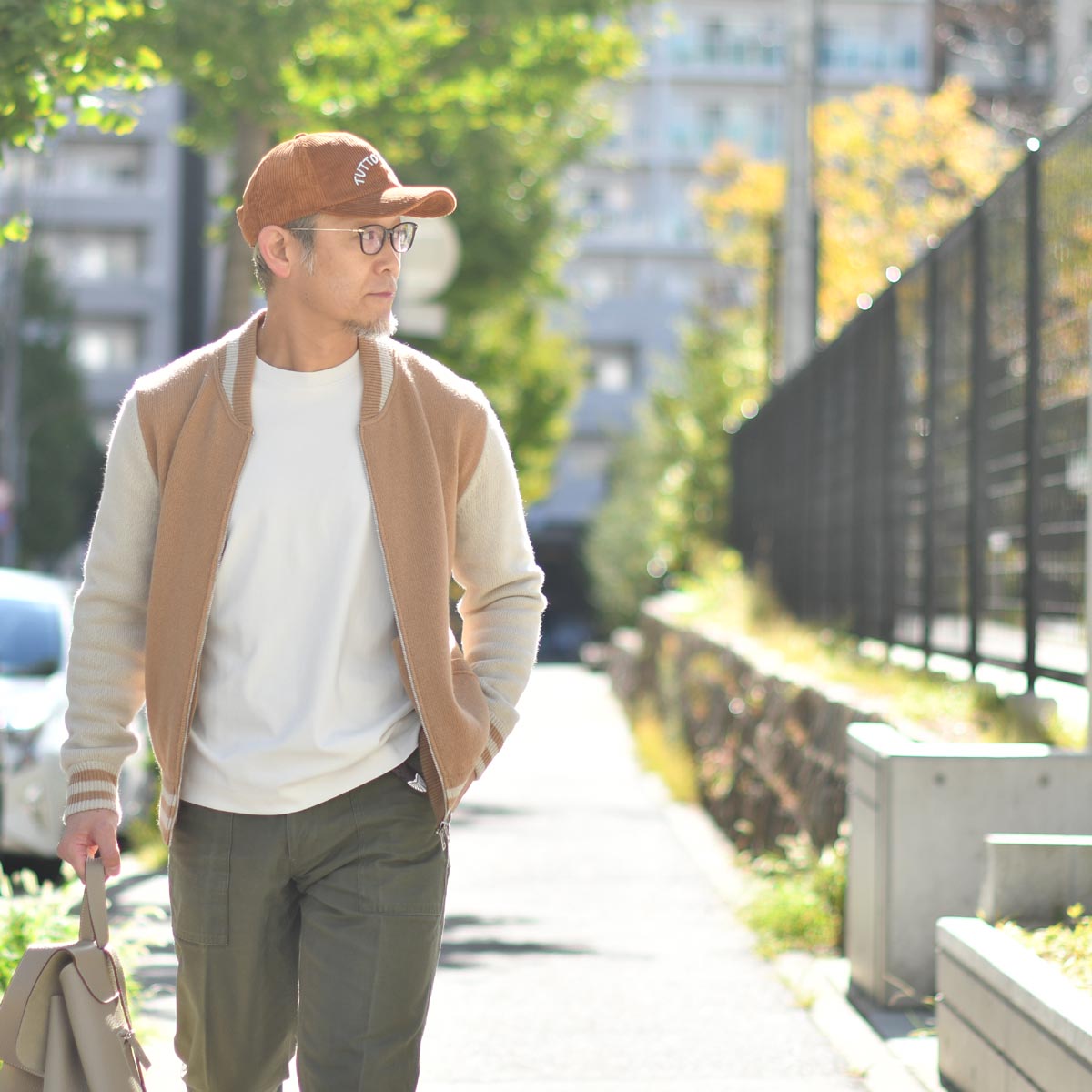 7GGのミドルゲージで仕上げたスタジャンは、本来のブルゾンに匹敵するような保温性で