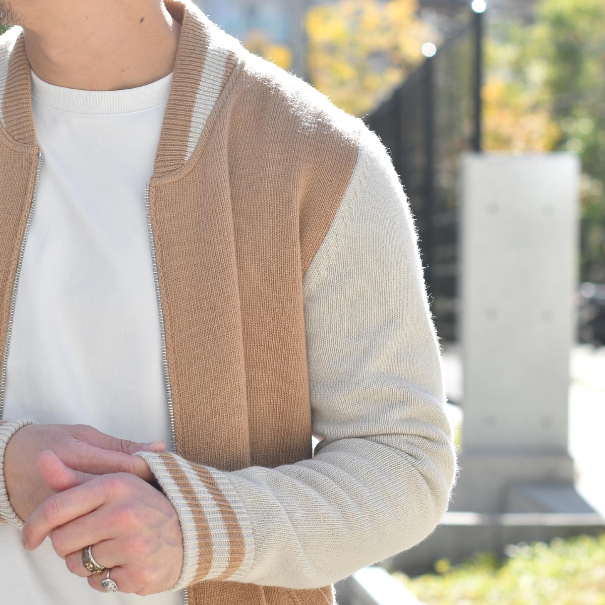 今最も注目を浴びるスタジャンデザインのニットブルゾンです☆