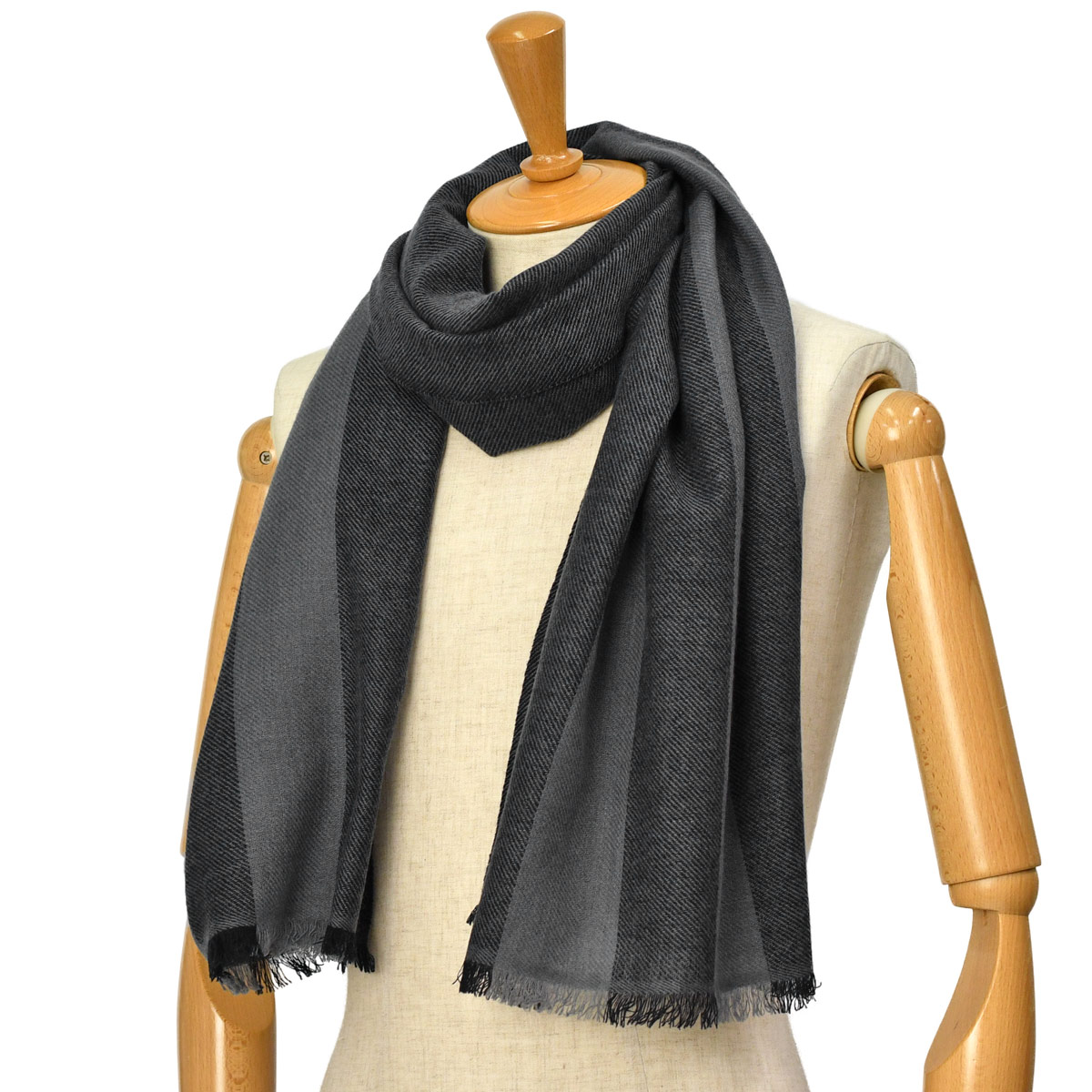 ◆DELRUBY【デルルビー】大判カシミヤストール Landline ストライプ ブラック ダークグレー