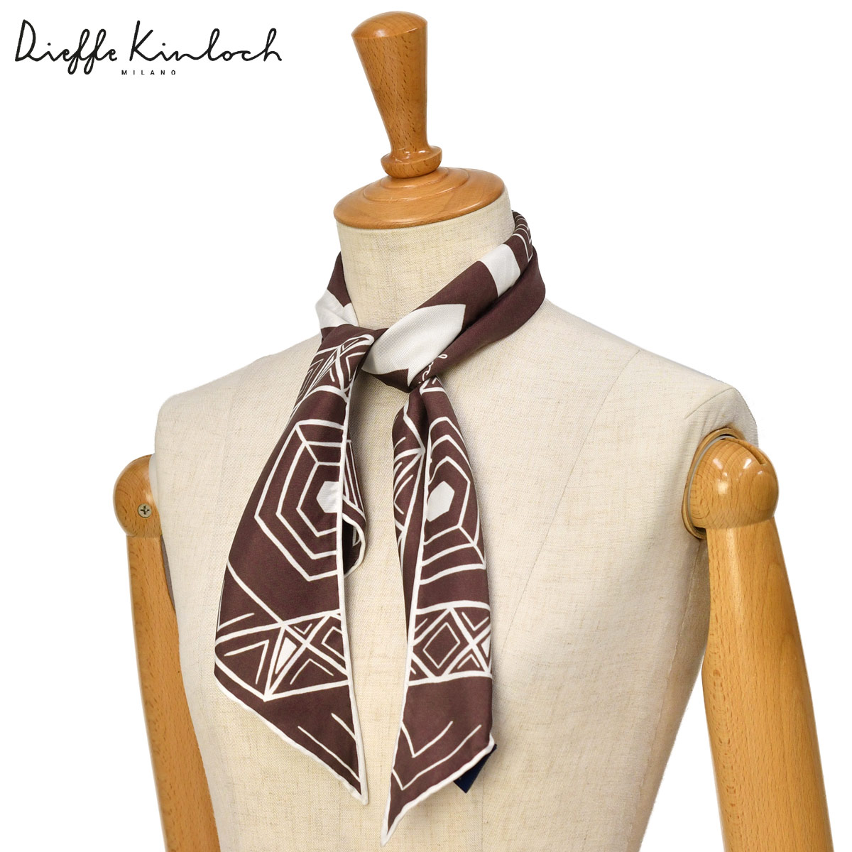 ◆Dieffe Kinloch【ディエッフェ・キンロック】スカーフ トライアングル TATOO AMAZON トライバル柄 シルク ブラウン