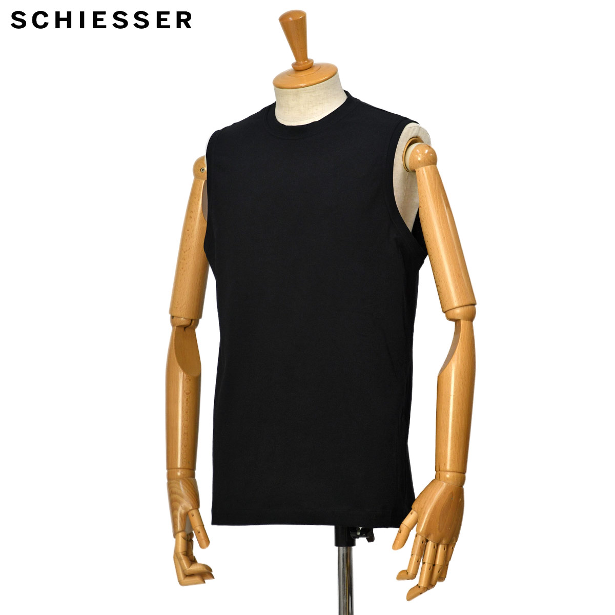 ◆Schiesser【シーサー】ノースリーブクルーネック 2パックTシャツ AMERICAN T-SHIRT SINGLET BLACK コットン ブラック