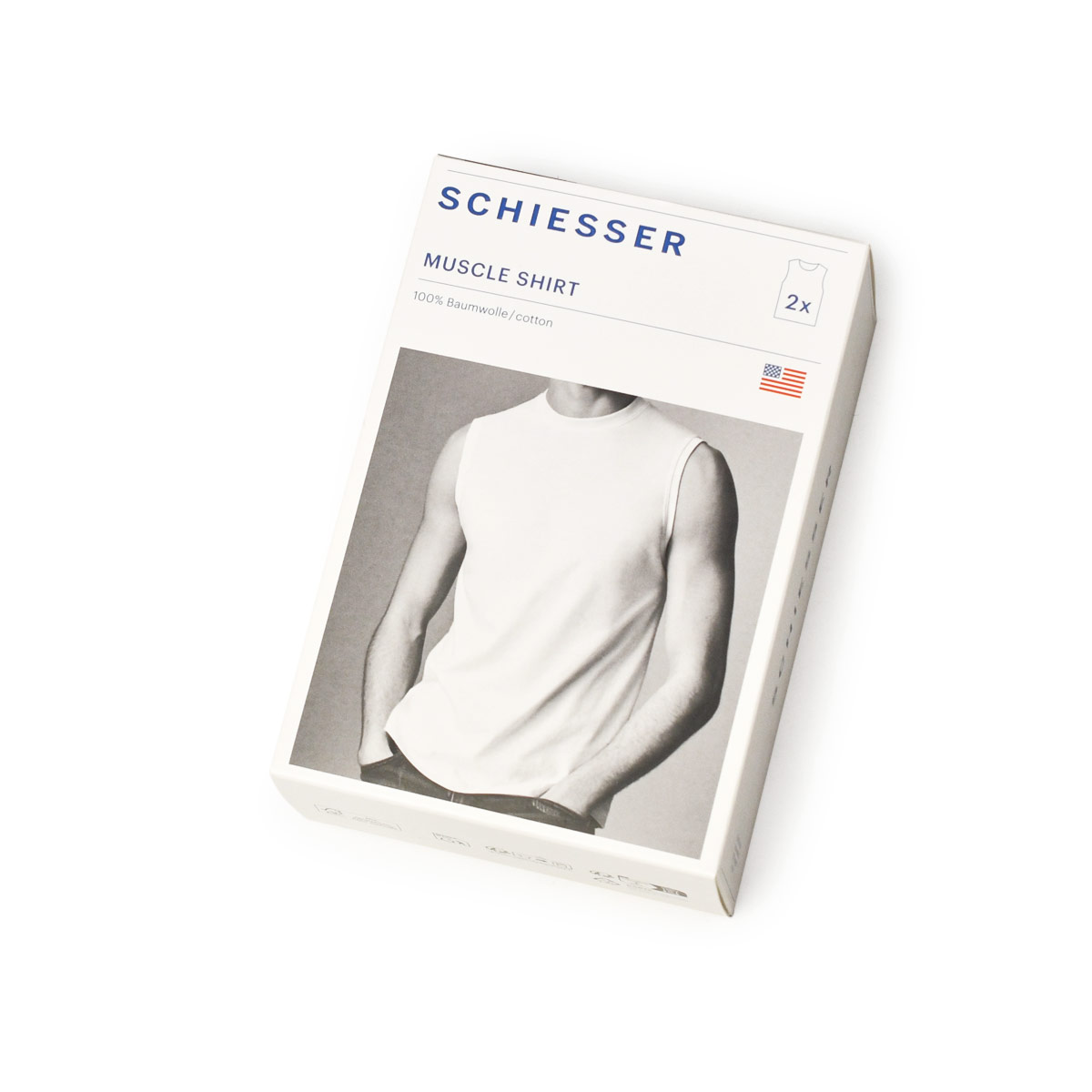 ◆Schiesser【シーサー】ノースリーブクルーネック 2パックTシャツ AMERICAN T-SHIRT SINGLET WHITE コットン ホワイト