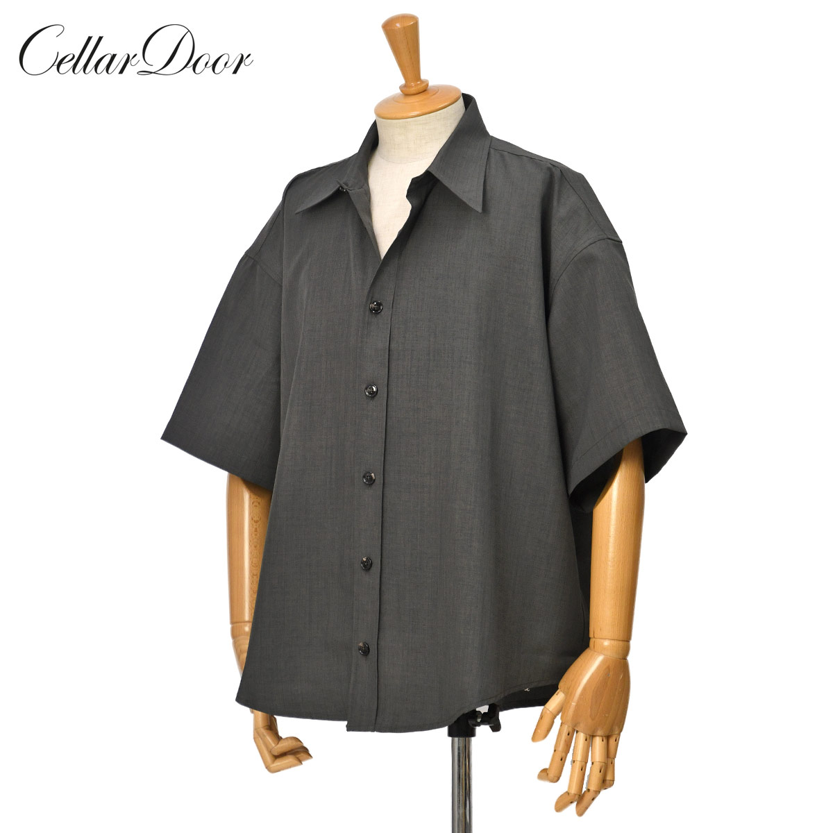 ◆Cellar Door【セラードアー】半袖オーバーシャツ CELYA 99 ウール調ポリエステル ブラック