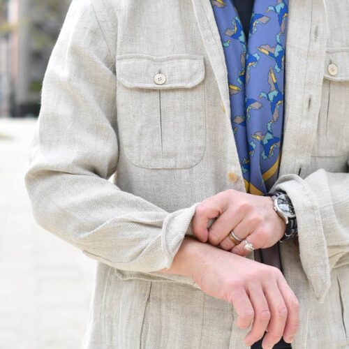 一見、サファリジャケットの様に見える構築的な佇まいではありますが、