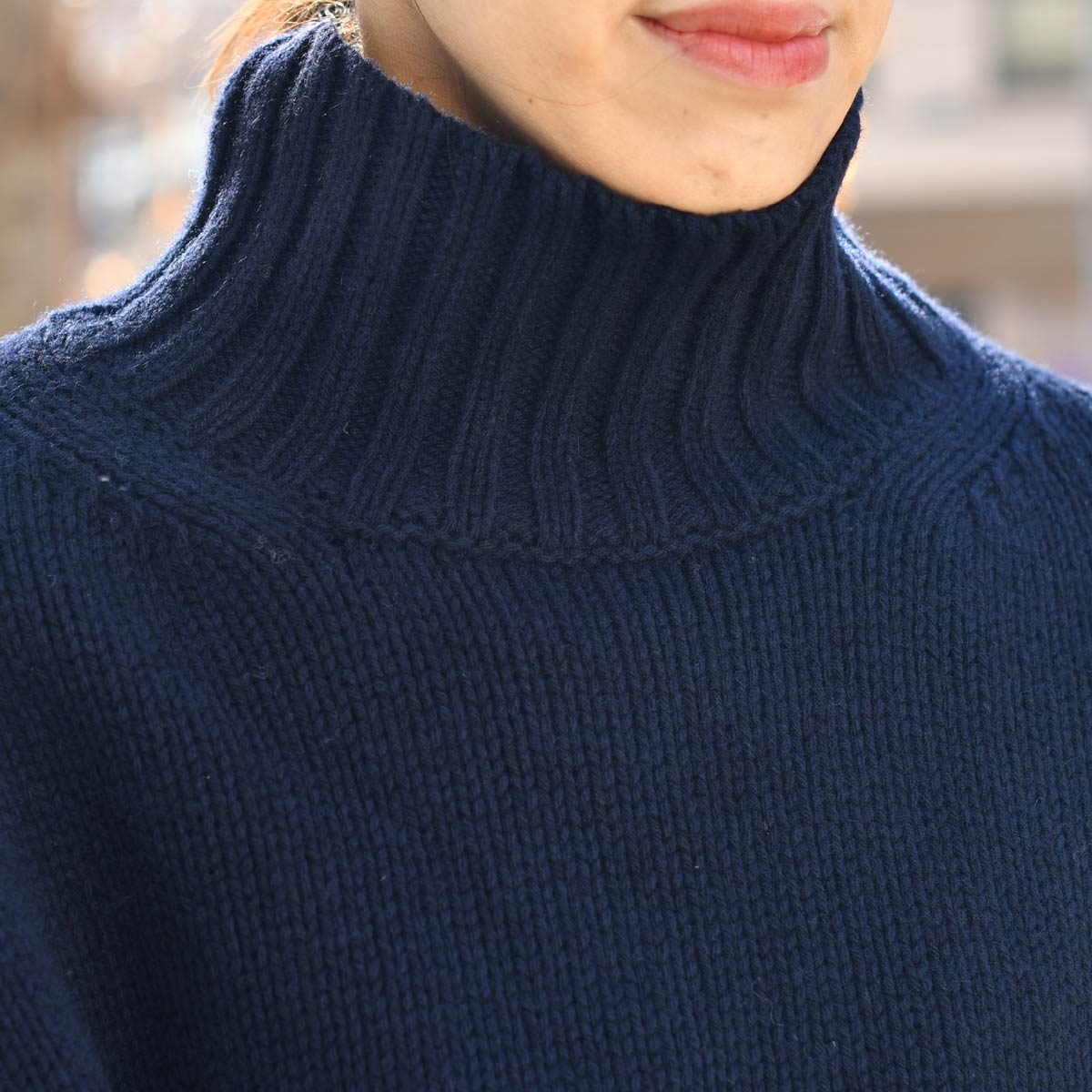 やや高めのネックラインが首元を柔らかく温かく包み込み、