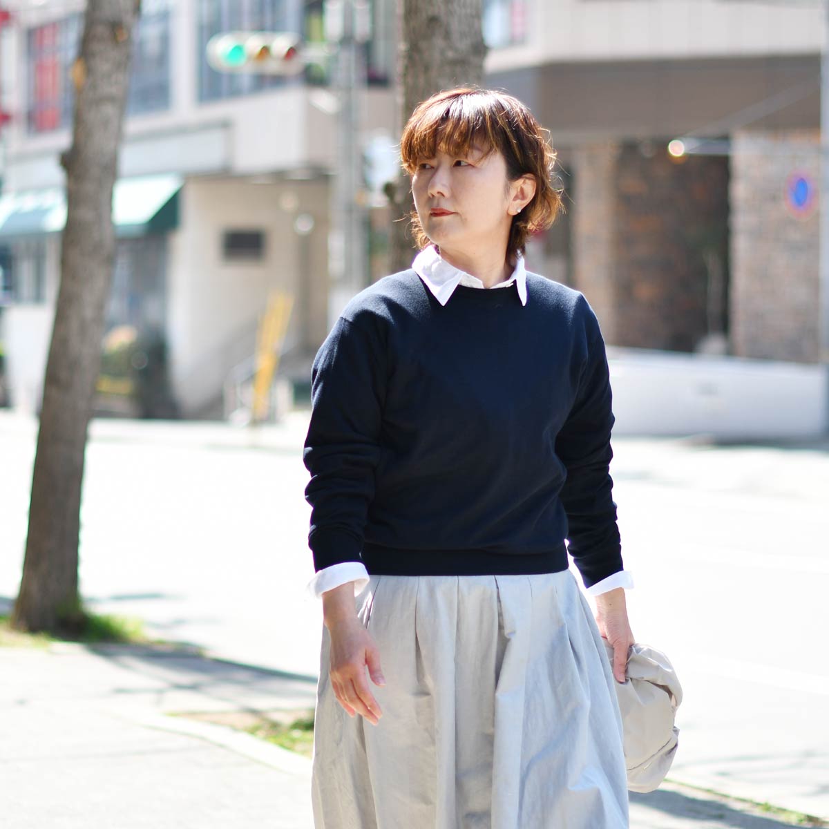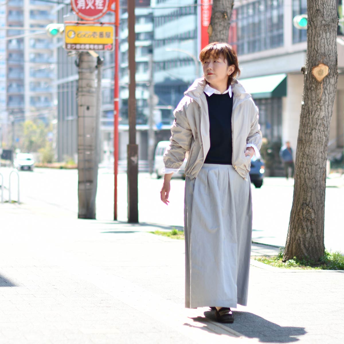 春のスカートスタイル。