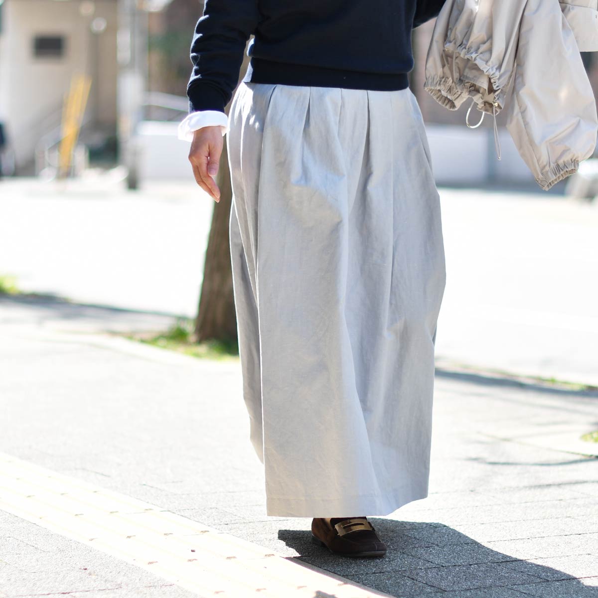 また、コットンリネンのほど良くハリのある肉感により、フンワリ感が際立つスカートです。