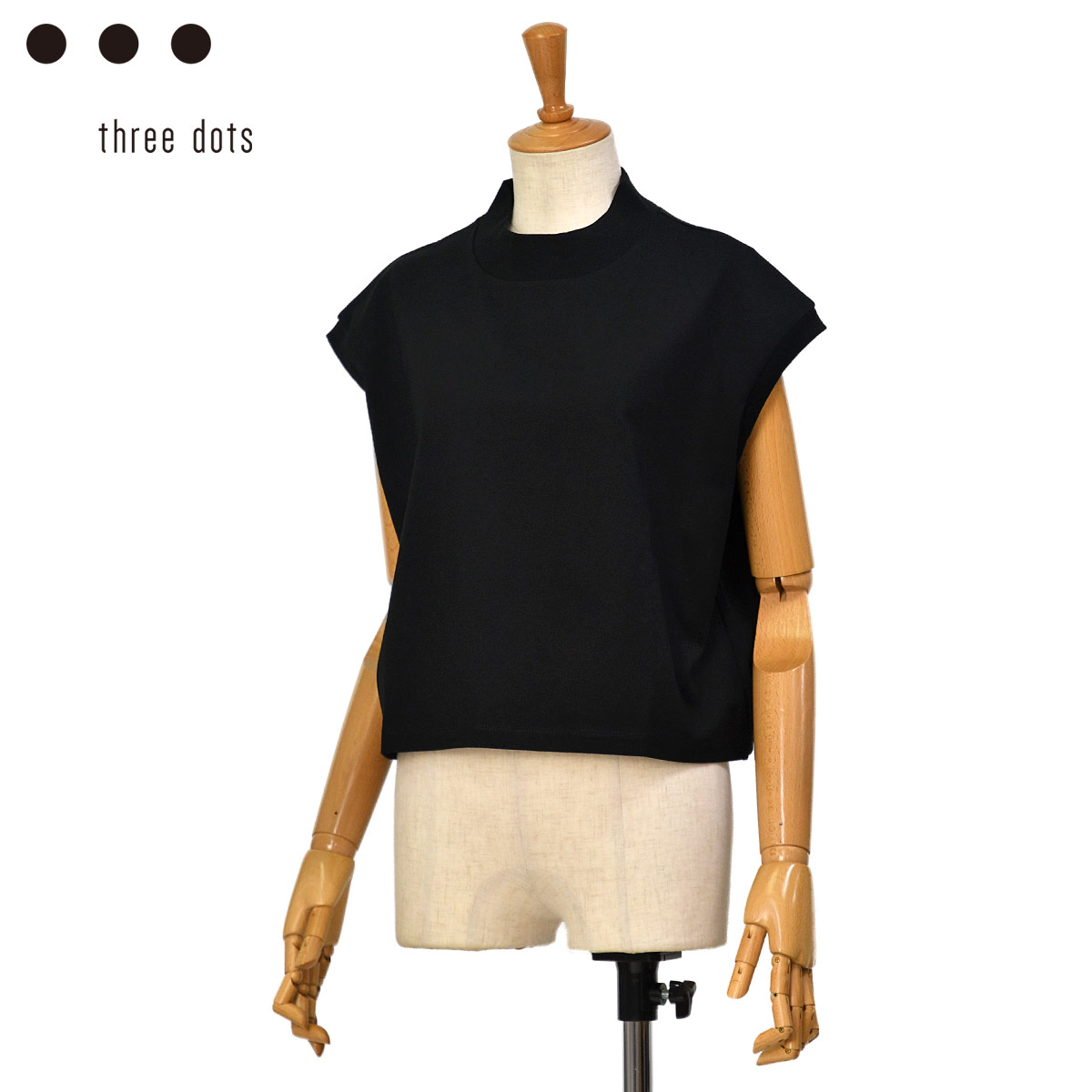 ◆three dots【スリードッツ】スリーブレスクロップドカットソー BA0003Y 019 BLACK コットン ブラック