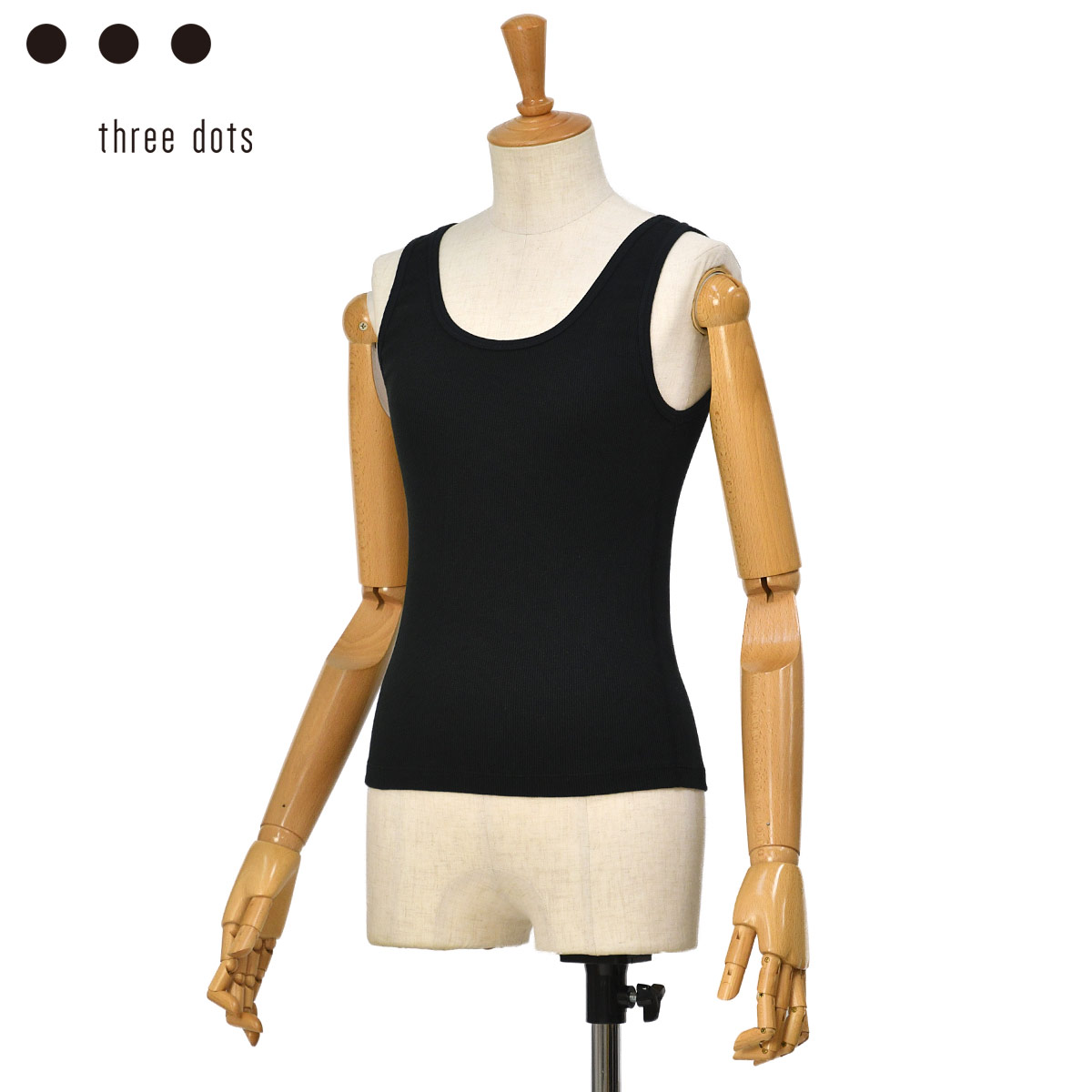 ◆three dots【スリードッツ】リブタンクトップ AD0004Y 019 BALCK コットン ブラック