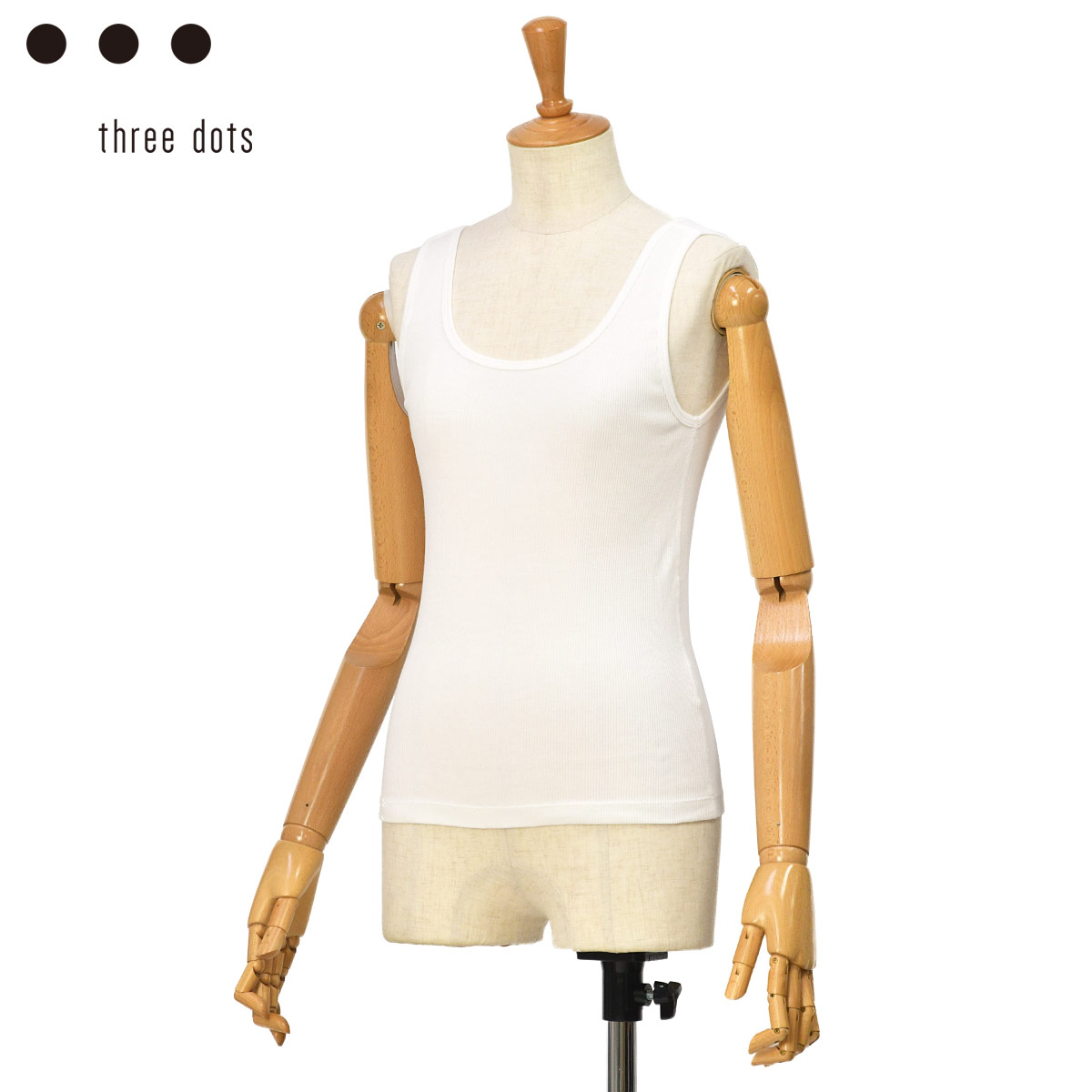 ◆three dots【スリードッツ】リブタンクトップ AD0004Y 001 WHITE コットン ホワイト