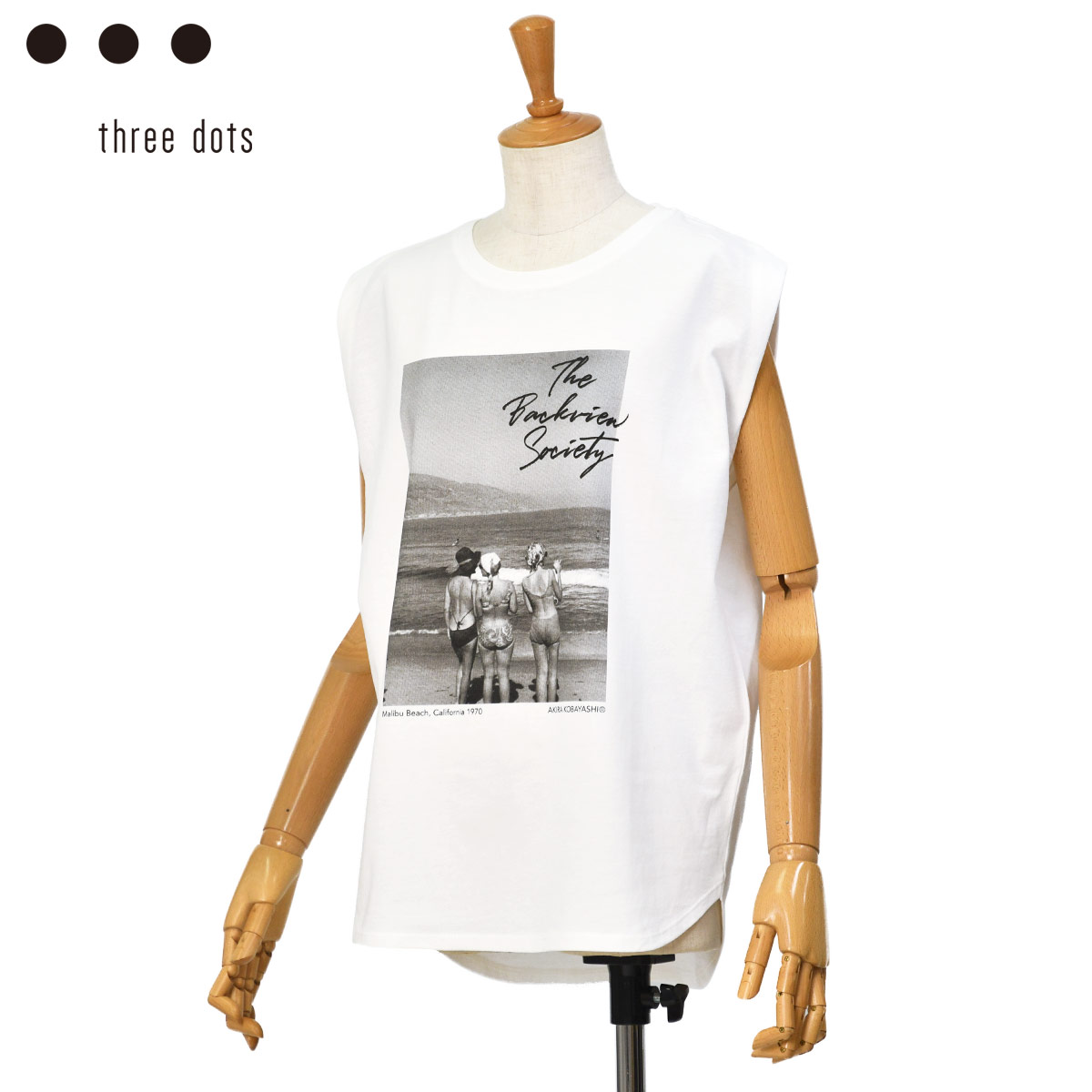 ◆three dots【スリードッツ】グラフィックスリーブレスTシャツ AK0004Y 075 BACKVIE コットン ホワイト