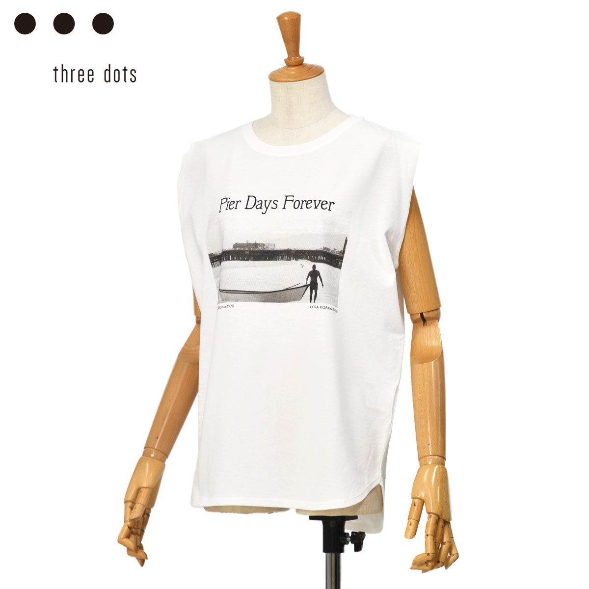 ◆three dots【スリードッツ】グラフィックスリーブレスTシャツ AK0004Y 009 PIERDAYS コットン ホワイト
