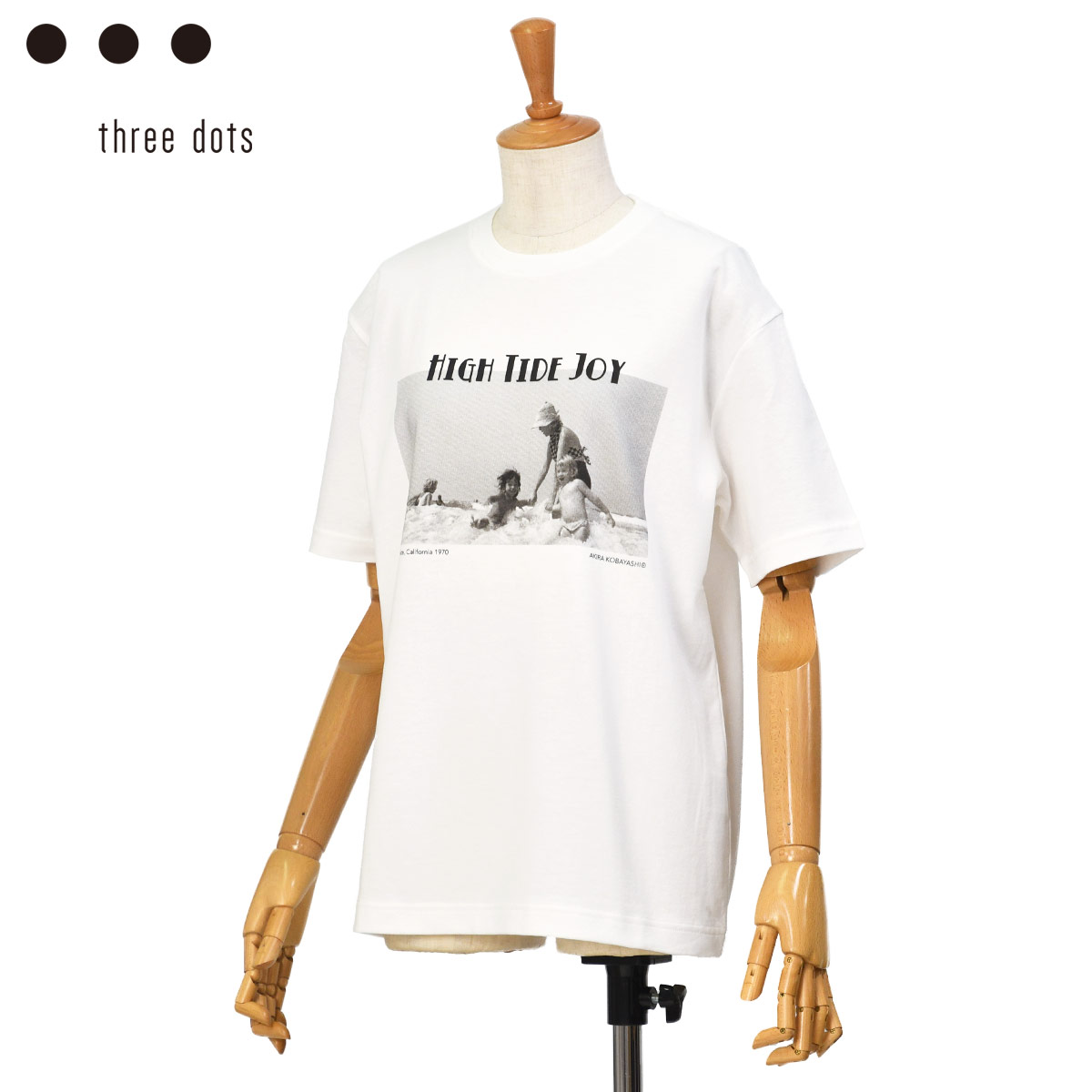 ◆three dots【スリードッツ】グラフィック半袖Tシャツ AK1005YU 030 HIGH TIDE JOY コットン ホワイト