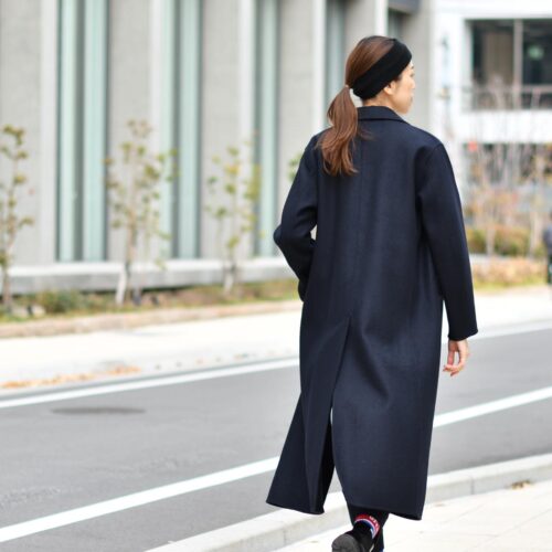 仕上げは、空気を纏うような一枚仕立てのチェスターコート。
