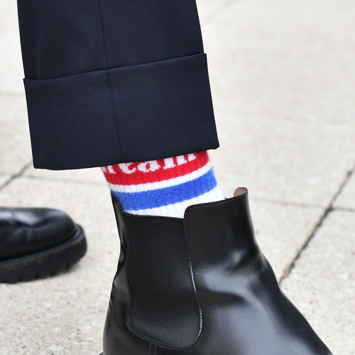 ボトムスには、チェルシーブーツとの繋がりが美しいテーパードパンツを合わせ、足元まで端正に。