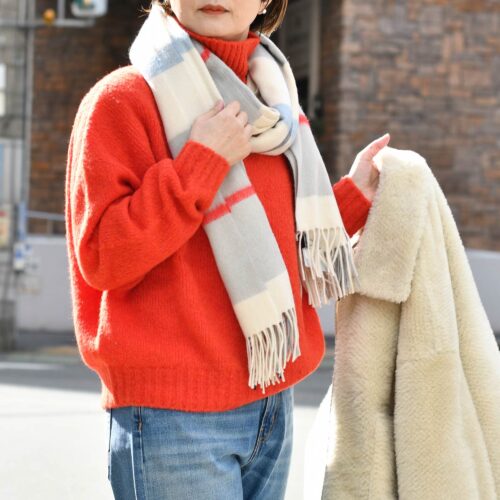 SCAGLIONEニットと同じ赤ラインが入っているのがポイントです。