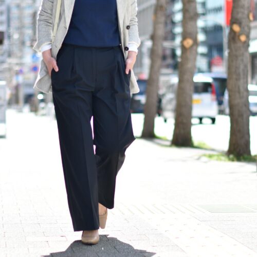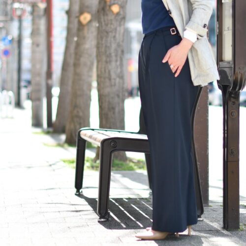 加えてパンツのウエスト位置が高いこともスタイルアップを叶えてくれますね。