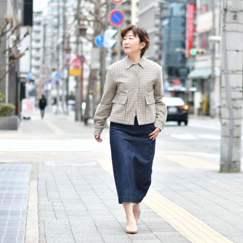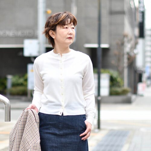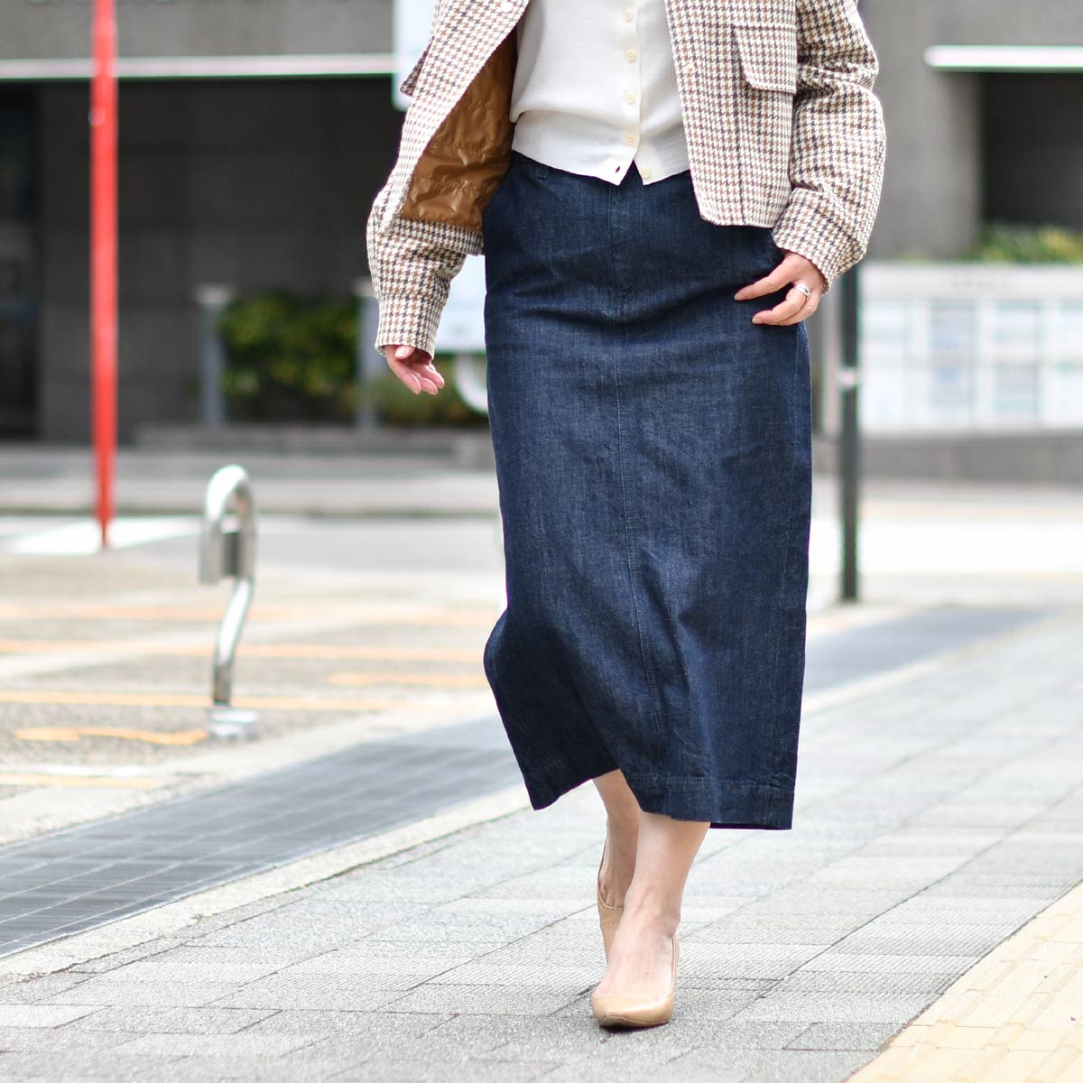 ボトムには、PT TORINO DENIMの上品なインディゴタイトスカートをセレクトいたしました。